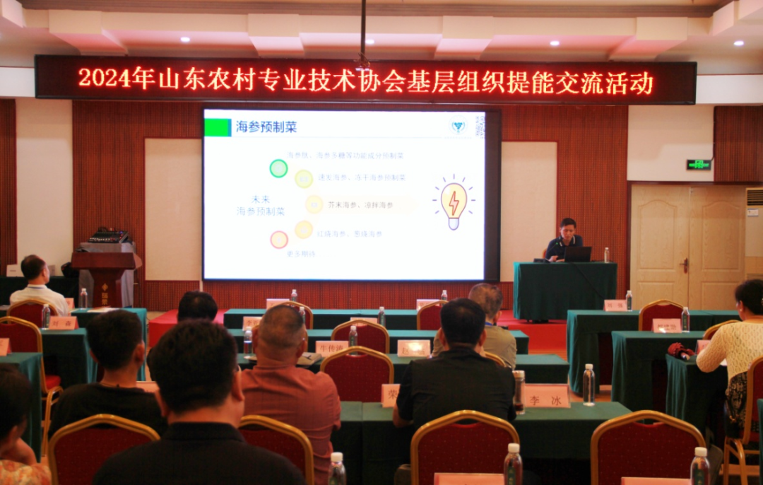 活动期间,与会人员到牟平区大窑街道增富山农场进行了实地考察,中国农技协发展处李玉磊以《“凝聚科技力量 服务乡村振兴”——推进有组织建设科技小院“家”》为题,山东省海洋资源与环境研究院研究员张健以《海参加工技术及产品开发》为题,分别做了专题报告。